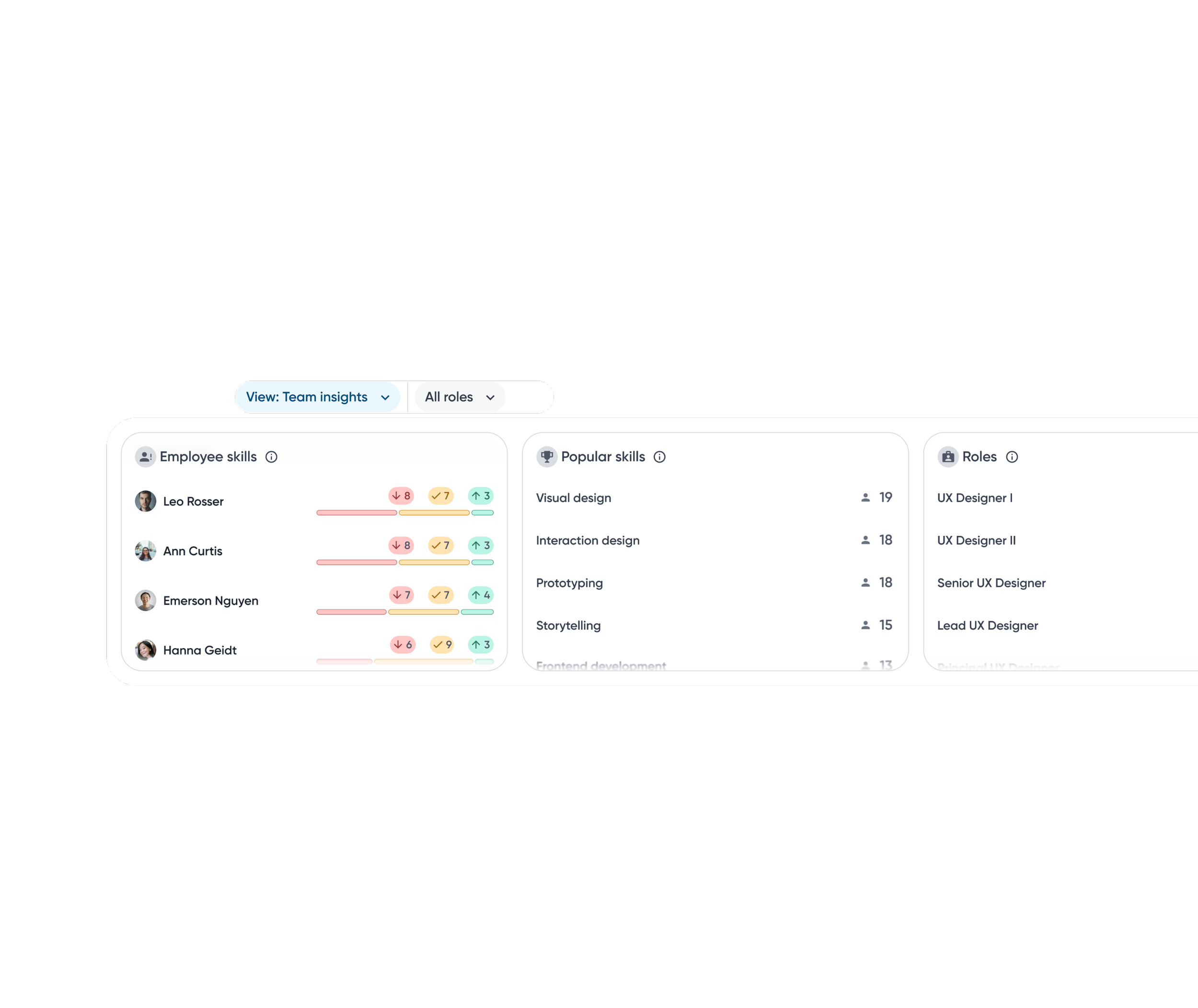 Insights are sorted by percentage to account for uneven skill coverage across roles, making gaps and strengths easier to compare.