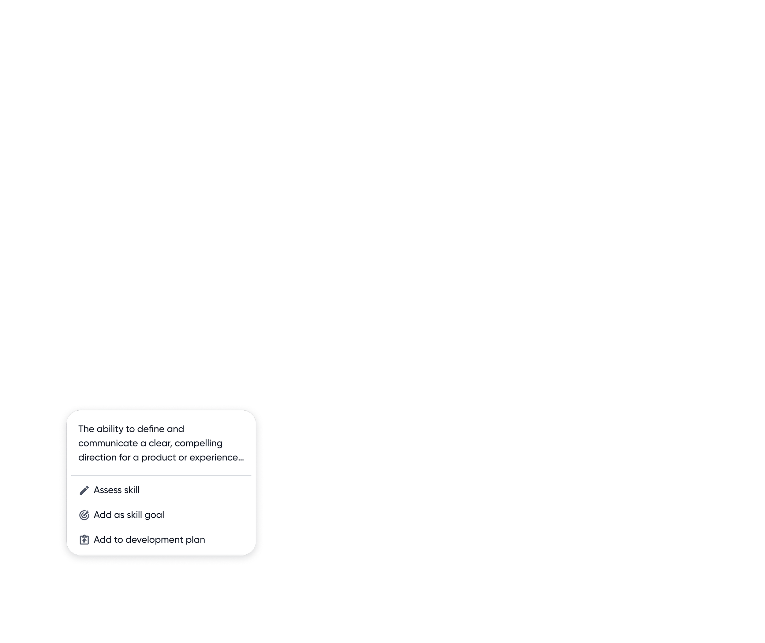 Contextual actions allow employees to move seamlessly from understanding a skill to taking meaningful next steps, keeping insight and momentum in the same place.