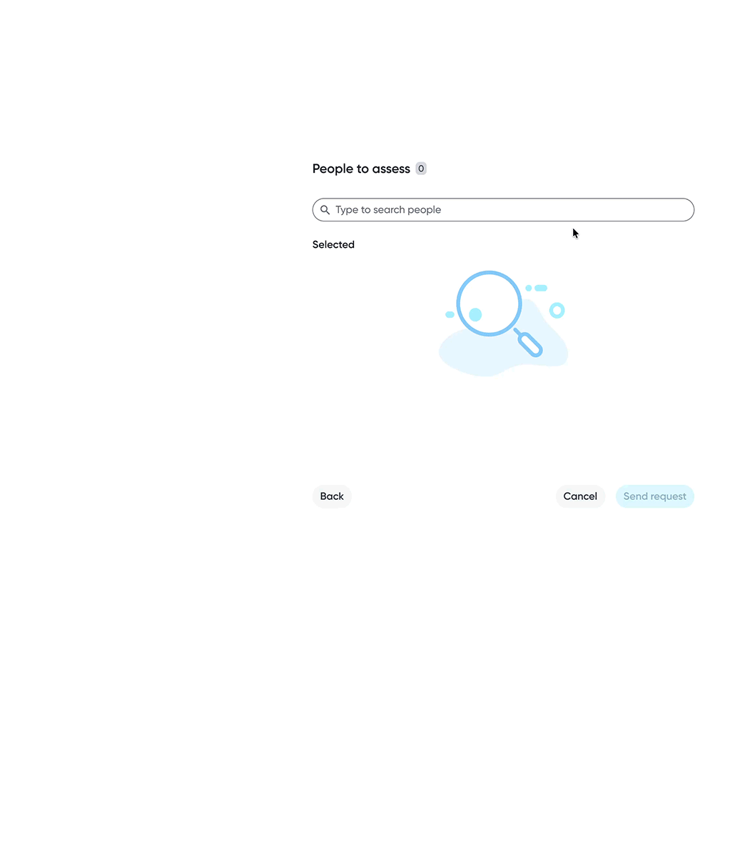 Assessor selection gives employees flexibility over which perspectives contribute to their skill data, supporting a more balanced assessment.