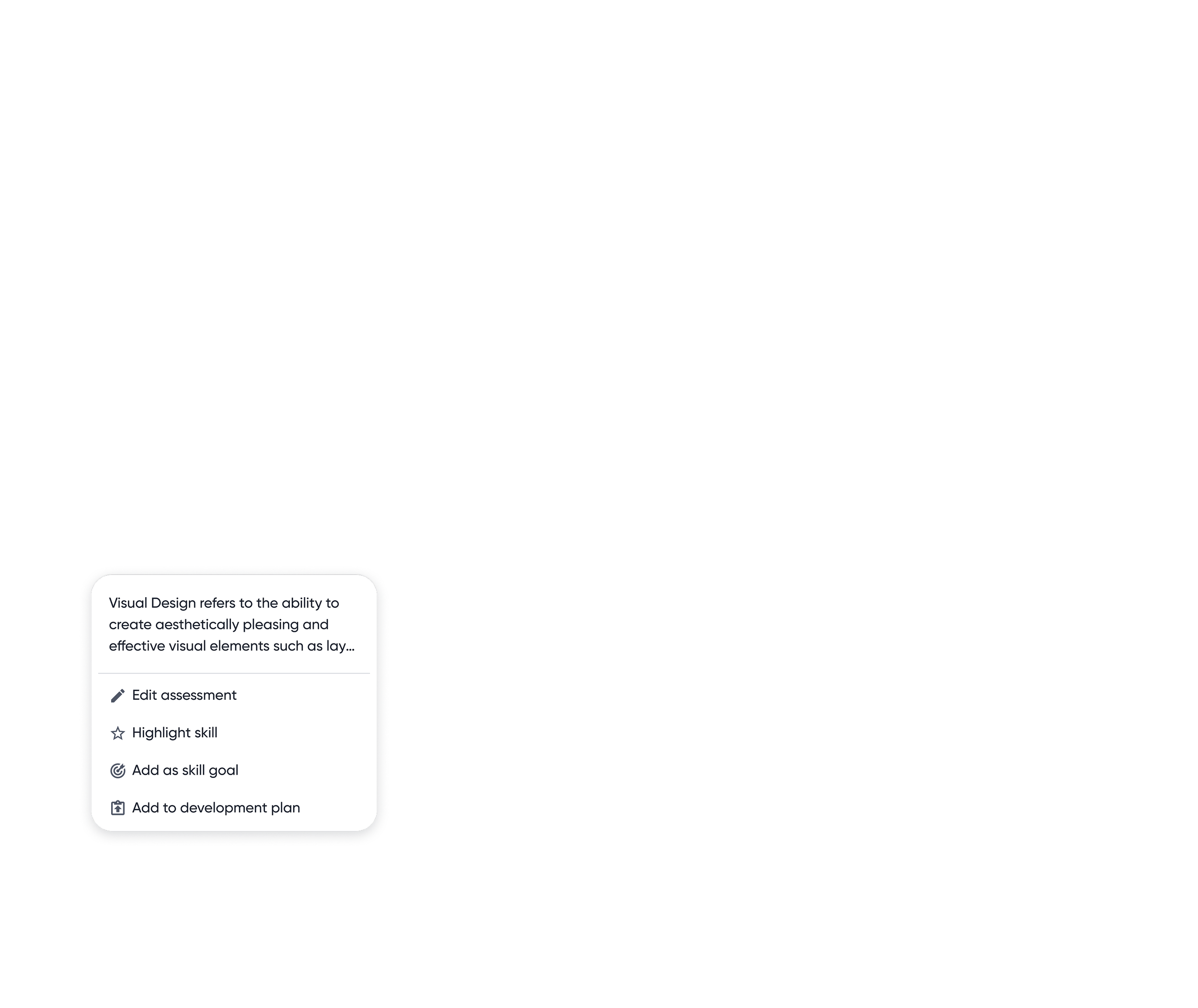 Contextual actions allow employees to edit, highlight or add skills to plans to development plans.