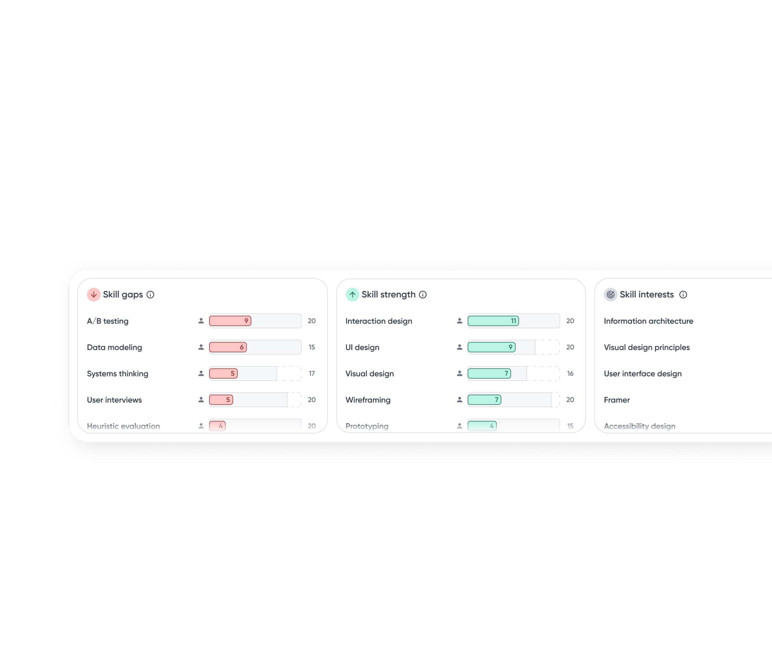 To empower confident action, skill proficiency must be intuitively understandable. Making skill data understandable rethinks how skills are visualized, explored, and interpreted so users can quickly understand where they stand without decoding raw data.