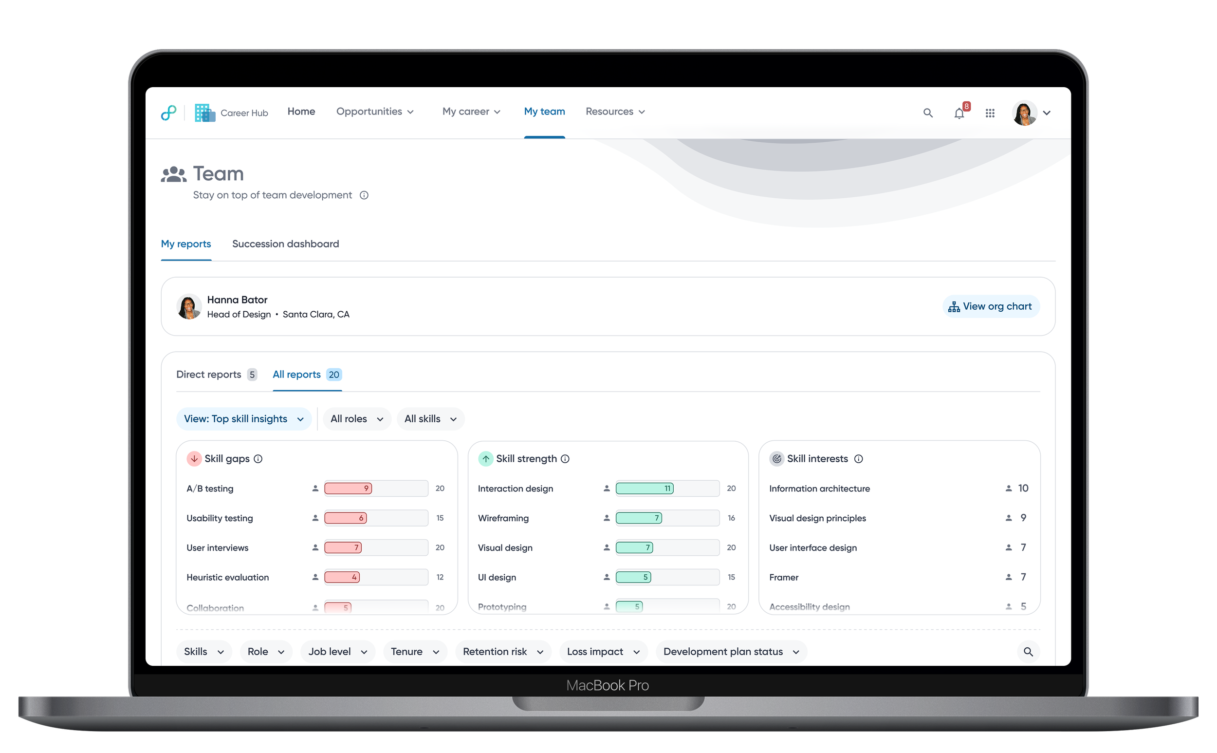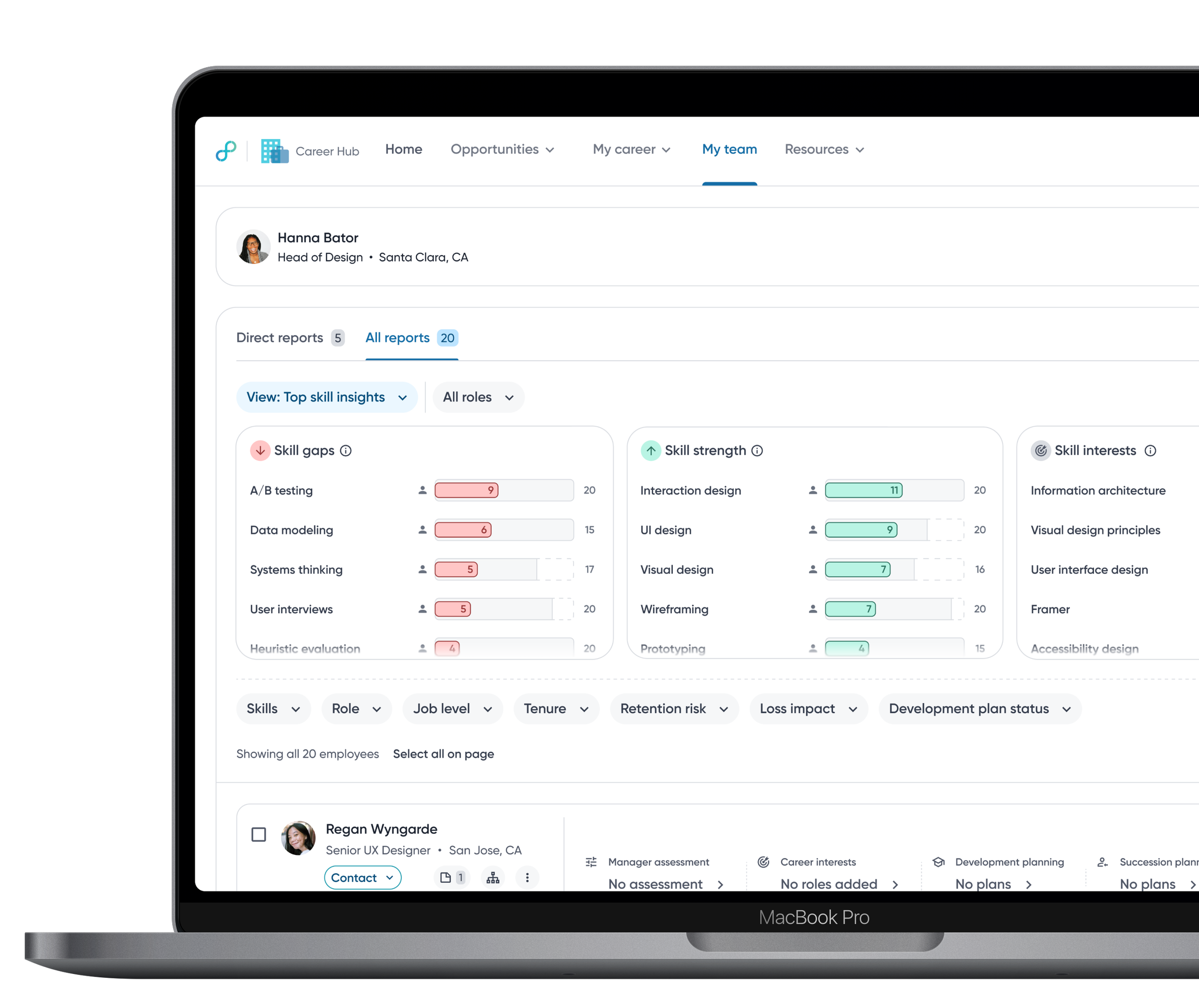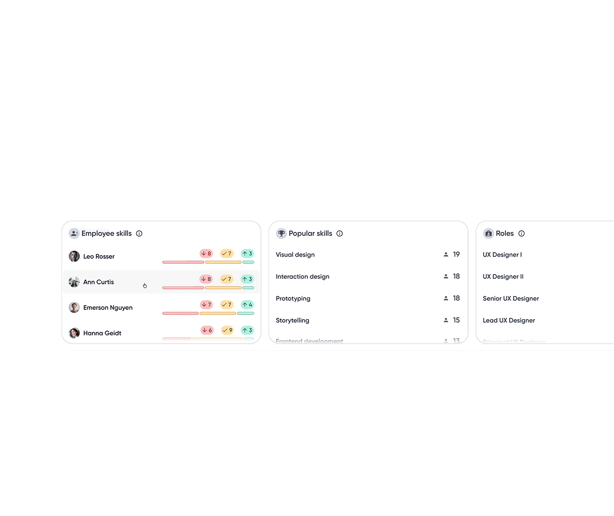 Seeing which skills are missing for a desired role helps employees understand what to learn next and removes guesswork from career growth.